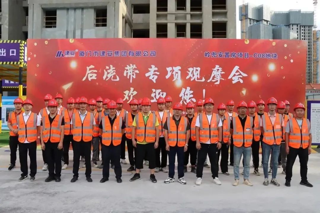 根據(jù)廈建質(zhì)安【2023】8號文《關(guān)于加強后澆帶施工質(zhì)量管理的通知》要求,結(jié)合廈門市建設(shè)工程質(zhì)量安全站印發(fā)的2023年“安全生產(chǎn)月"活動實施方案,6月26日,后澆帶專項觀摩會在廈門市建安集團有限公司承建的嶺兜安置房項目-C08地塊順利舉行。