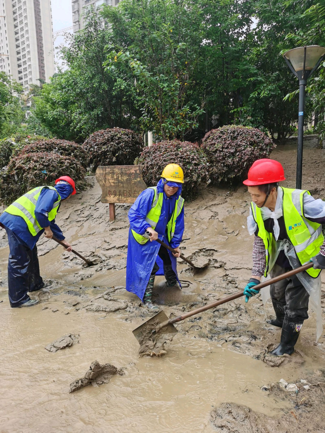 為爭取最短時間恢復災前容貌,救援隊爭分奪秒地工作,根據(jù)地形區(qū)域的不同情況,使用人工與機械相結合的方式,高效清淤。在大家的努力下,東新公園的原貌漸漸呈現(xiàn)出來。