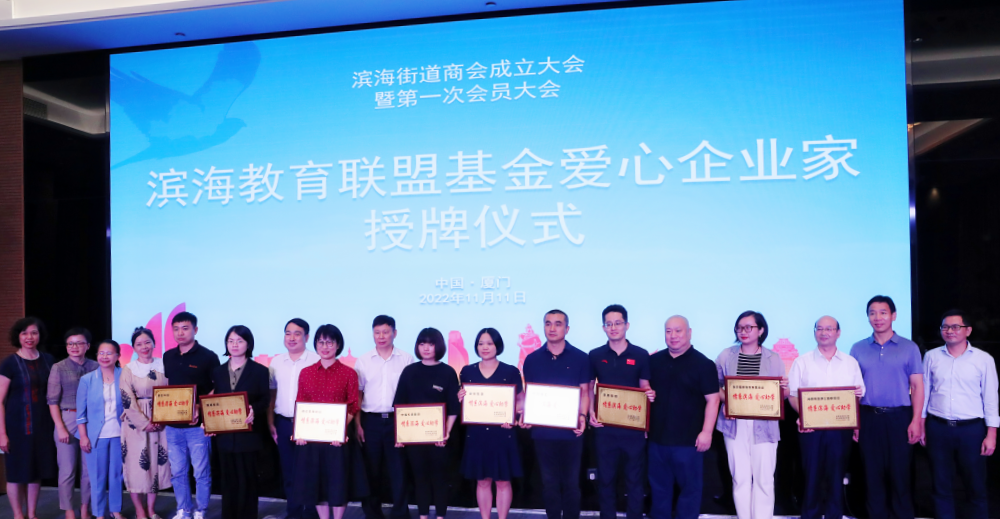 大會(huì)最后,廈門建安集團(tuán)等9家企業(yè)及基金會(huì)獲頒濱海教育聯(lián)盟基金愛心企業(yè)家獎(jiǎng)牌。